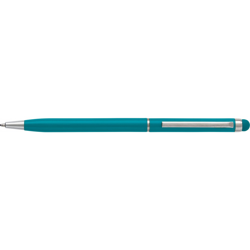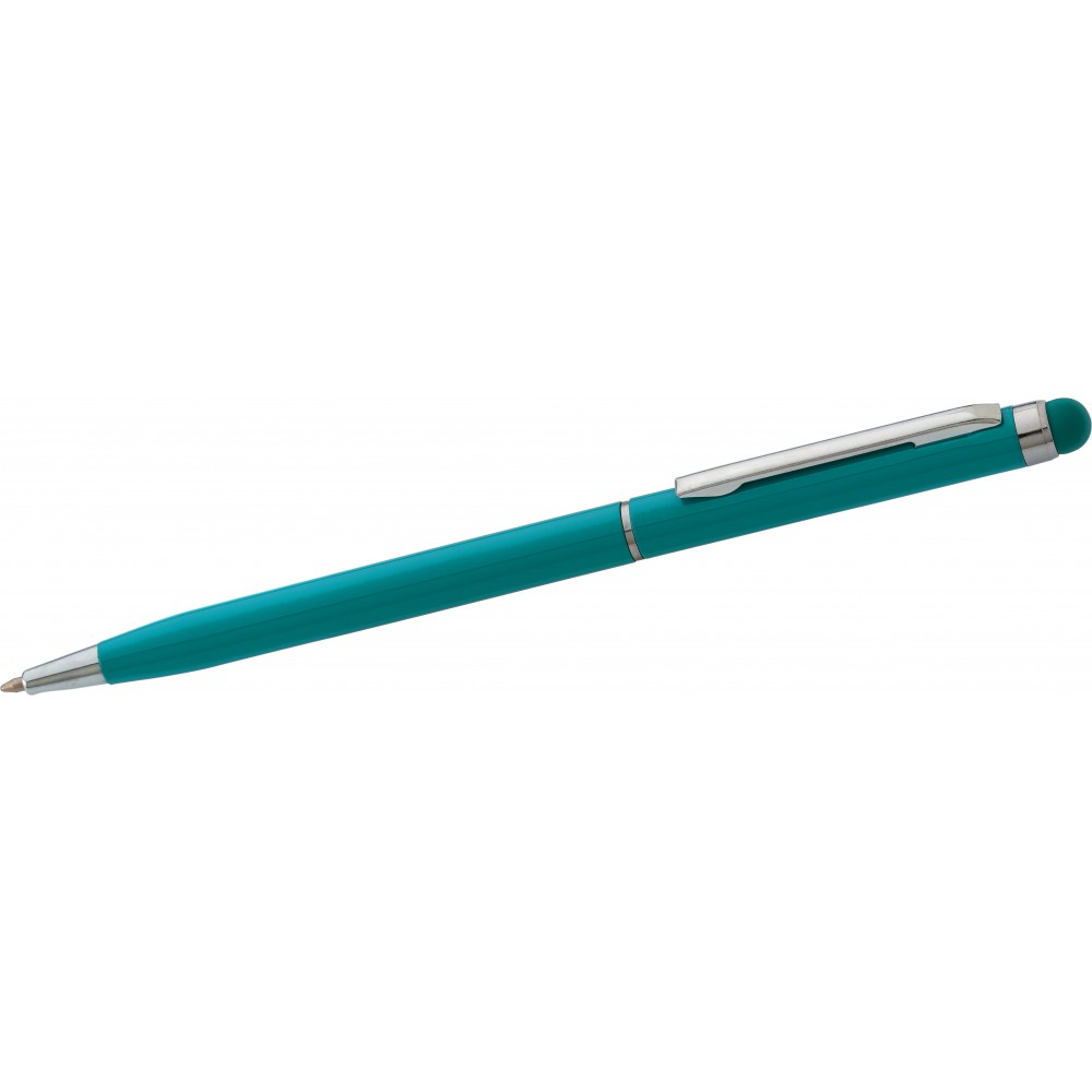 Alumínium golyóstoll gumi érintővel, kék tollbetéttel.