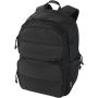 Hátizsák és laptoptáska 17"-es készülékhez. Kézipoggyász méretű. Hordozófüllel a tetején és oldalain. Tépőzáras laptop rekesszel, lopásgátló zsebbel és két nagy cipzáras rekesszel. Szellőző, párnázott hátoldallal, bőröndre húzható pánttal, zárócsatokkal és oldalsó USB-A porttal rendelkezik. Oldalsó csatok segítik a csomag kompakt tartását. Terhelhetősége kb. 12 kg. RPET alapanyagra utaló címke. Anyaga: 300D rPET poliészter.