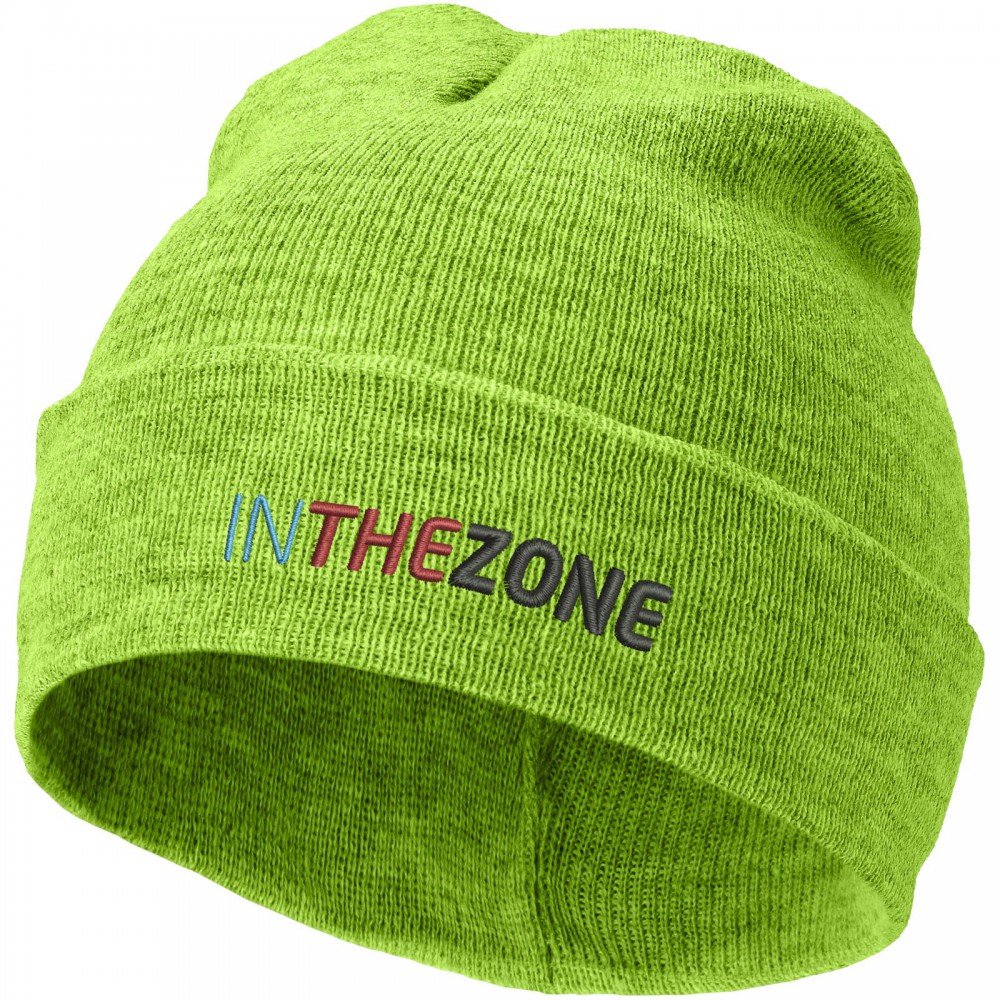 Egyrétegű sapka duplán felhajtott széllel. 1x1-es bordás kötésű, 100% akril.