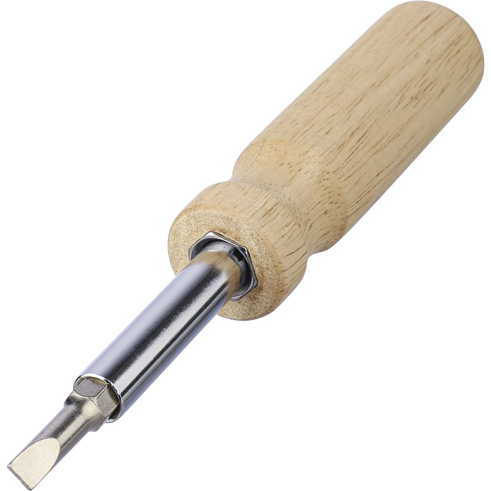 Kaucsukfa csavarhúzókészlet a nyélben tartható 4 db mágneses fejjel (2-2 db mindegyik kétoldalas hegyen). Praktikus és kompakt kialakítás cserélhető fejekkel és tartóval. Csomagolása barna papírdoboz.